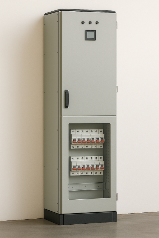 Modüler Elektrik Panosu Nedir? Modüler elektrik panosu, elektrik dağıtım ve kontrol sistemlerinde kullanılan, bileşenleri kolayca değiştirilebilir veya genişletilebilir şekilde tasarlanmış bir pano türüdür. Temel Özellikleri Esnek yapı: Kullanım amacına göre yeni modüller eklenebilir veya çıkarılabilir. Bakım kolaylığı: Arızalı bir modül kolayca değiştirilebilir, tüm sistemin kapatılması gerekmez. Standart boyutlar: IEC gibi uluslararası standartlara uygun bileşenlerle uyumludur. […]